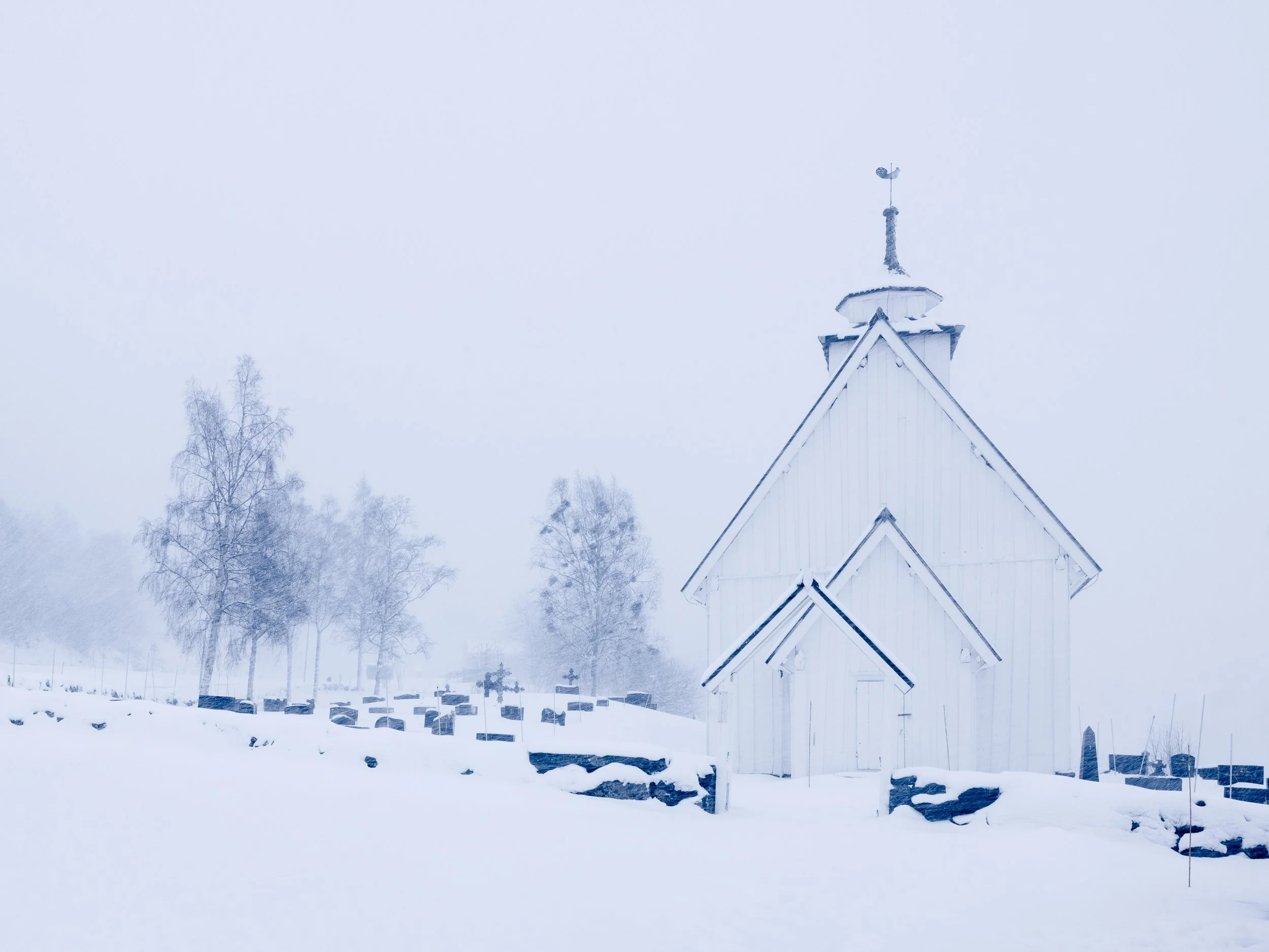 During the height of the snowstorm, I came across one of the amazing stave churches that Norway has to offer. The appalling conditions actually made it work.